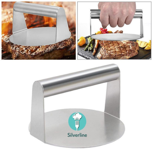 این ابزار به طور تخصصی برای فشردهسازی سریع و یکنواخت گوشت گوساله روی گریل یا فلت داغ طراحی شده است تا بهترین سطح تماس و کاراملیزاسیون ممکن را ایجاد کند.